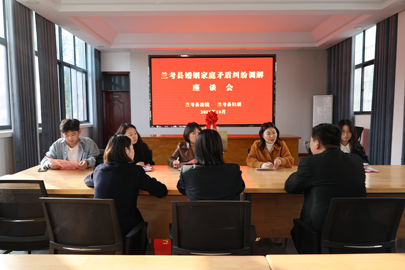 参会人员参观了调解工作室,并就婚姻家庭纠纷调解工作举行了座谈会。县法院立案庭庭长管楠就县法院家事纠纷案件予以介绍,并现场分享调解工作心得。双方围绕普法、调解、培训等重点工作展开深入交流,持续推进“法院+妇联”工作模式,从源头减少纠纷发生,以扎实工作为维护妇女儿童权益和社会和谐稳定贡献法治力量。