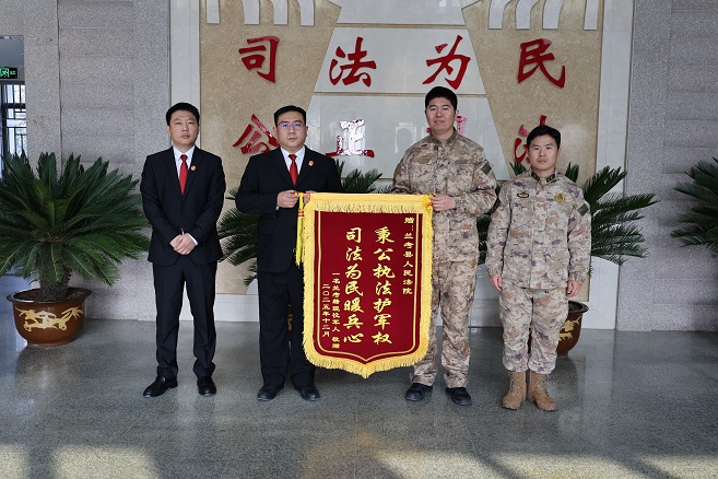 12月18日,兰考县法院收到了一份特殊的礼物--兰考县武装部政工科长胡森一行代替现役军人胡某向我院赠送一面印有“秉公执法护军权 司法为民暖兵心”的锦旗,感谢法院干警白宾宾仅用48小时执结了现役军人返乡探亲期间发生的交通事故纠纷案,有利的维护了军人的合法权益,彰显了司法拥军的力度和温度。
