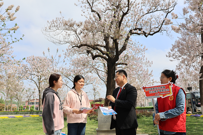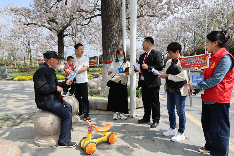 春深四月,桐花飘香。在第十一个“全民国家安全教育日”来临之际,为深入贯彻落实总体国家安全观,提升全民法治素养,兰考县法院刑事审判庭的法官助理与书记员们走出法庭,将普法课堂搬到了群众身边——县人民广场与焦桐广场,开展了一场“接地气、聚人气、扬正气”的国家安全主题宣传活动。