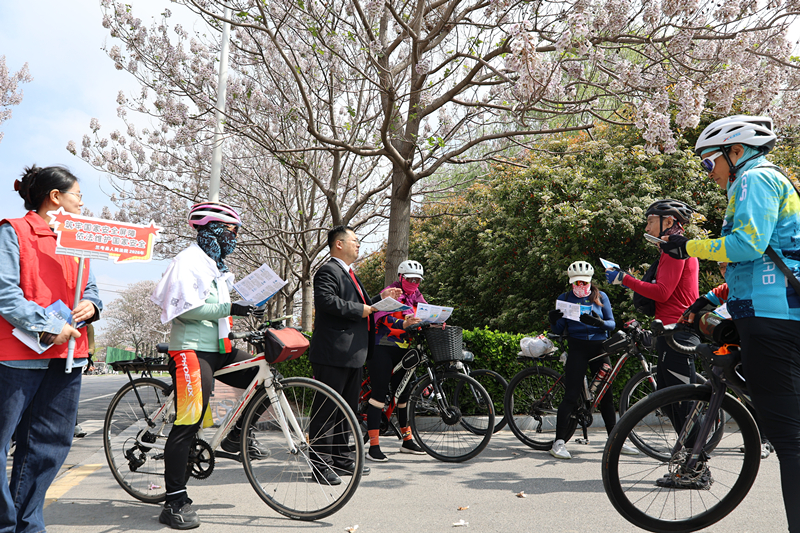 “大家请看,国家安全不仅仅是抓间谍,它包含了政治安全、国土安全、军事安全,也包括咱们网络安全、生态安全等方方面面……”法官助理曹腾超,结合身边案例,用通俗易懂的语言向过往群众、骑行者们讲解《国家安全法》《反间谍法》等法律法规,并发放印有国家安全举报电话“12339”的宣传册。骑行者们纷纷表示:“我们骑行途中,经常用手机记录美景,以后一定会注意,不在敏感区域随意拍摄、上传,不经意间就可能泄露国家秘密。”