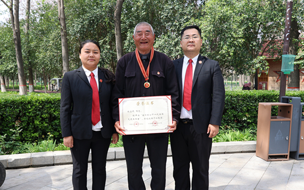 在普法现场的一个角落,一位精神矍铄的老人引起了干警和围观群众的注意。他正是“焦桐”的第二代守树人、全国关心下一代工作先进工作者——魏善民老人。看到法院干警在焦桐下普法,魏善民老人主动走上前来。法官助理曹腾超,赶忙恭敬地握住老人的手,言语恳切地说:“魏爷爷,您守的是焦书记留给兰考的根,我们守的是社会公平正义和国家安全防线的‘根’。焦裕禄同志的‘三股劲’,就是我们办案和普法最大的动力。”